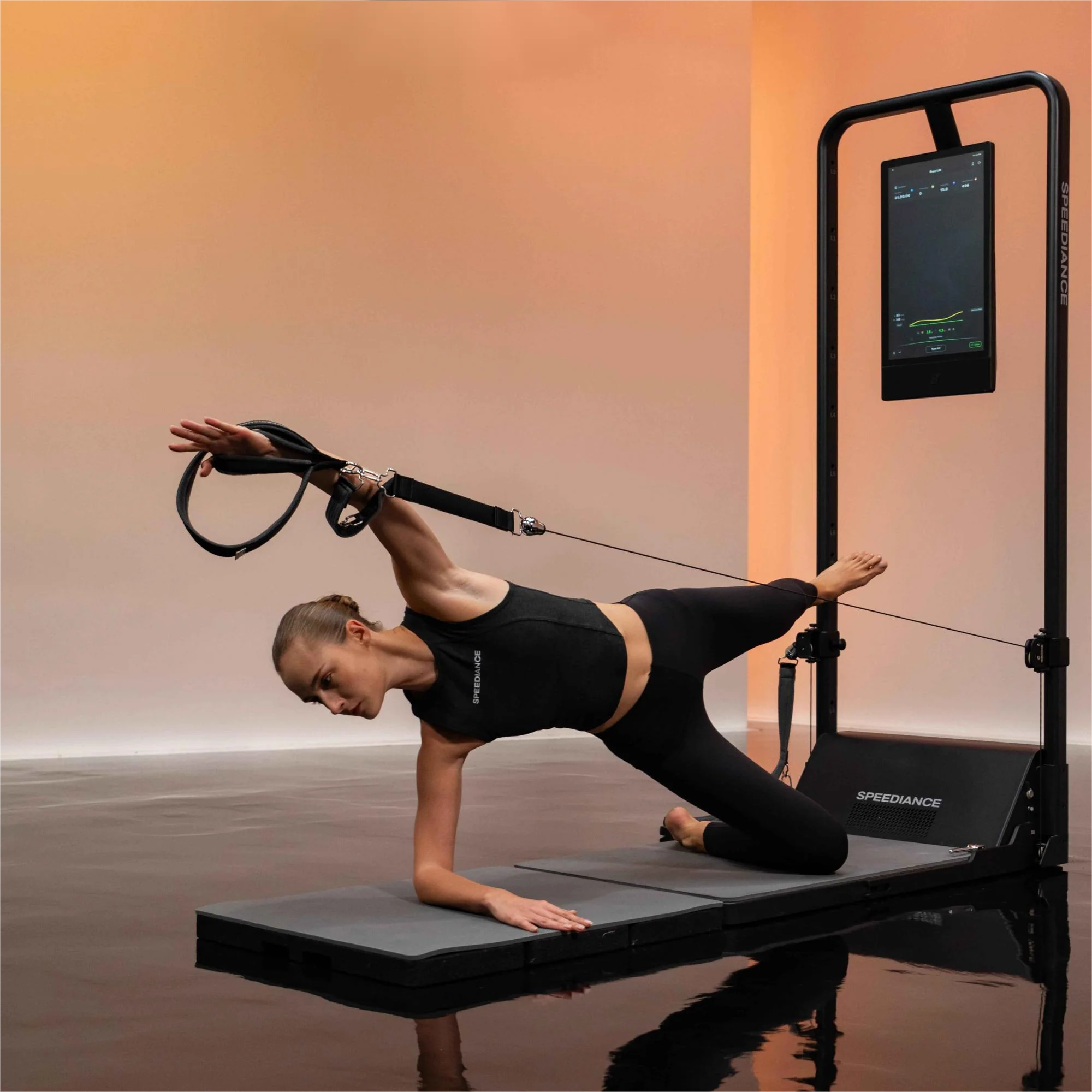 A Speediance pilates szett eszközeinek és a Gym Monster motoros rugalmas ellenállási módjának kombinálásával újraalkottuk a pilates felszerelésekben található rugóalapú ellenállási rendszert - ezzel azonnal kibővítve a Gym Monster-ben rejlő edzéstípusokat.